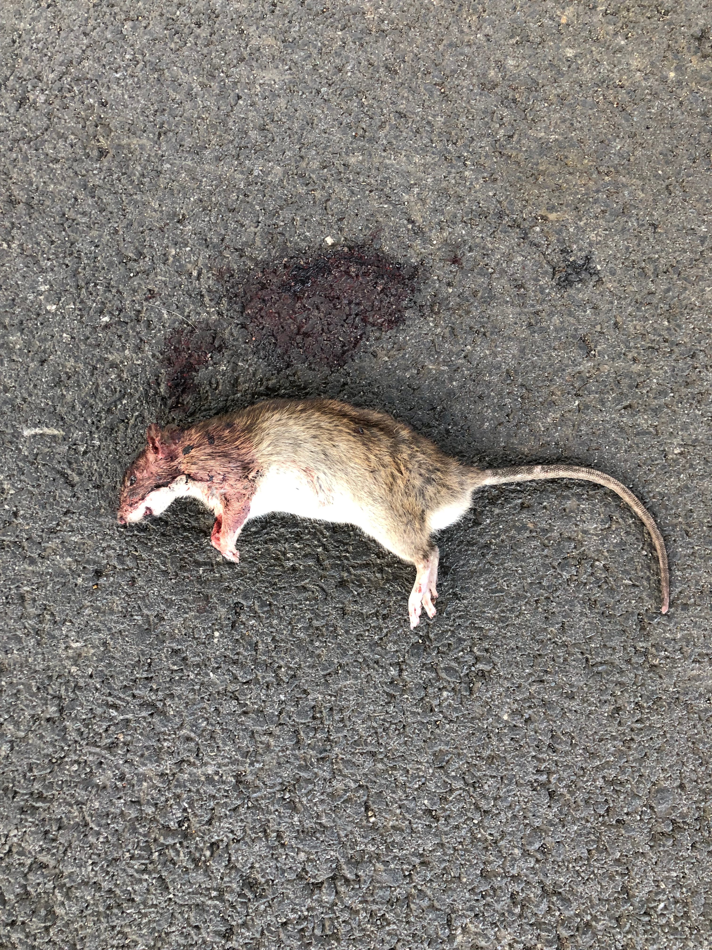 We have two exciting dead rats of the roadkill variety. The first rat was located on the West Side Highway. Look at that beautiful coat!