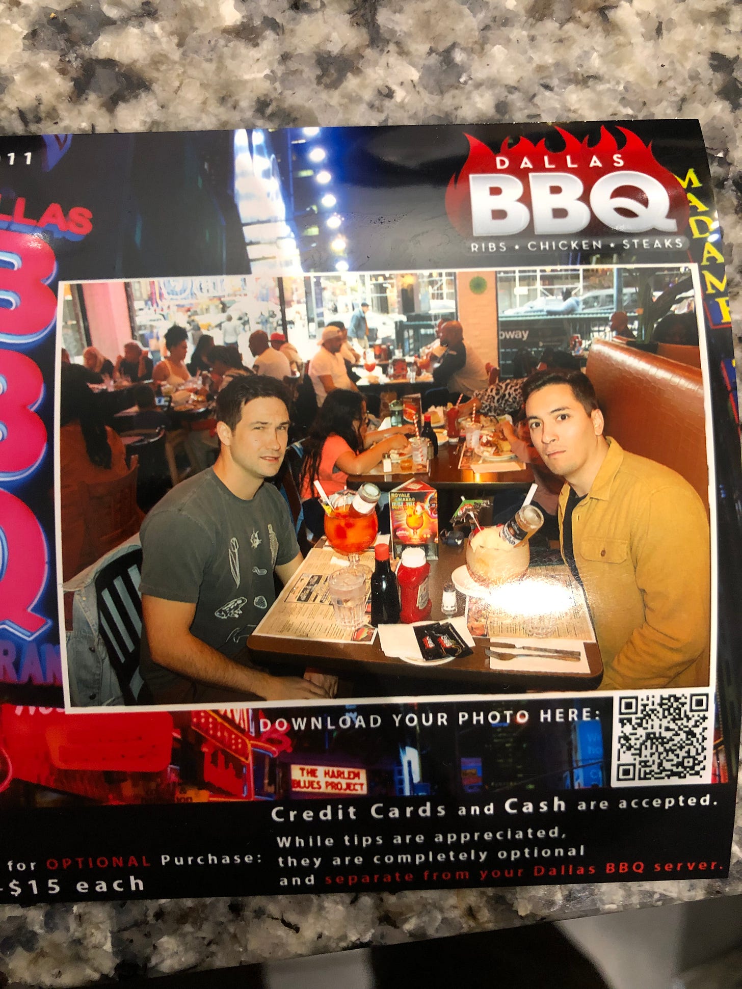 For some reason, Dallas BBQ employs a photographer to take pictures of people eating and then offers to sell you photos in cheap cardboard frames like you’re riding a rollercoaster. At this point I was closer to vomiting from my drink and wings than I ever have been from a rollercoaster.