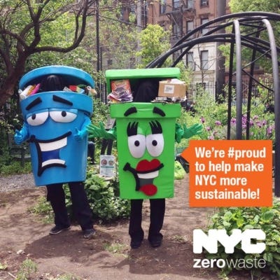 In conclusion, I’d like to thank the Department of Sanitation for their inspiring mascots, though I’m not sure whether they’re inspiring the next generation of kids to keep the city clean, or inspiring the next generation of furries to dress up like garbage cans and have sex with each other. I’m guessing the latter because from the looks of it, nobody is currently inspired to keep the city clean.