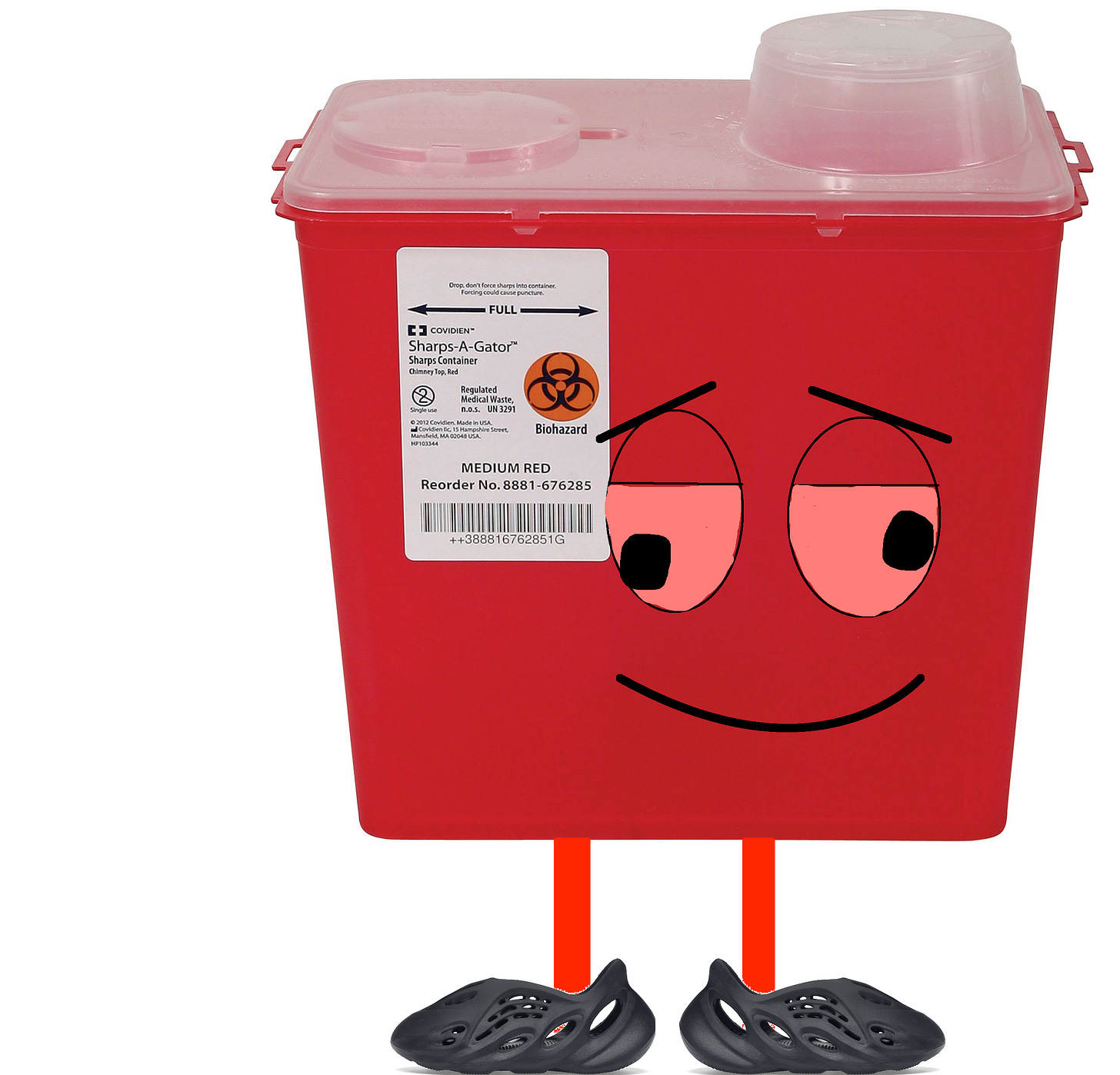 Introducing “Pokey,” the syringe receptacle. He keeps the city clean and free of bloodborne illness. He also wears cool shoes so you know he’s not a cop.