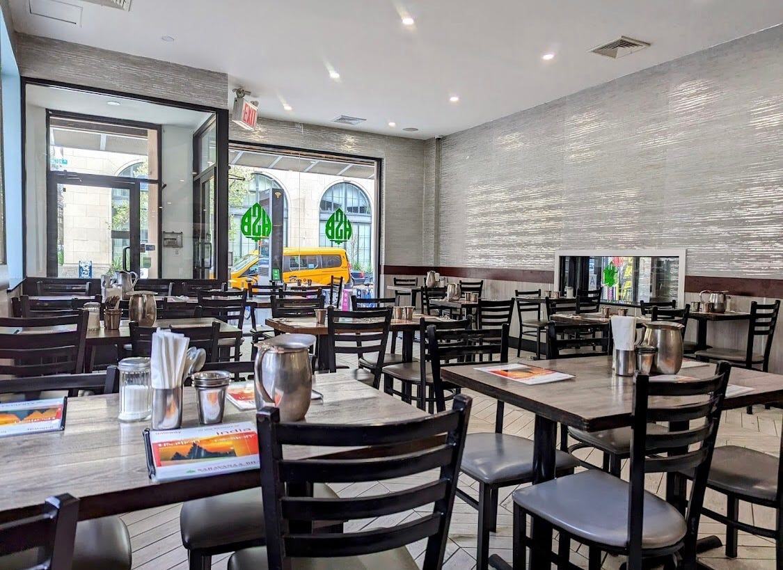 Saravanaa Bhavan is a box on 26th and Lexington with white walls, beige floors, and a white ceiling, which makes it feel like you’re eating dinner in Purgatory; it’s a glitch in Manhattan absolutely devoid of stimulus besides your food and fellow diners.