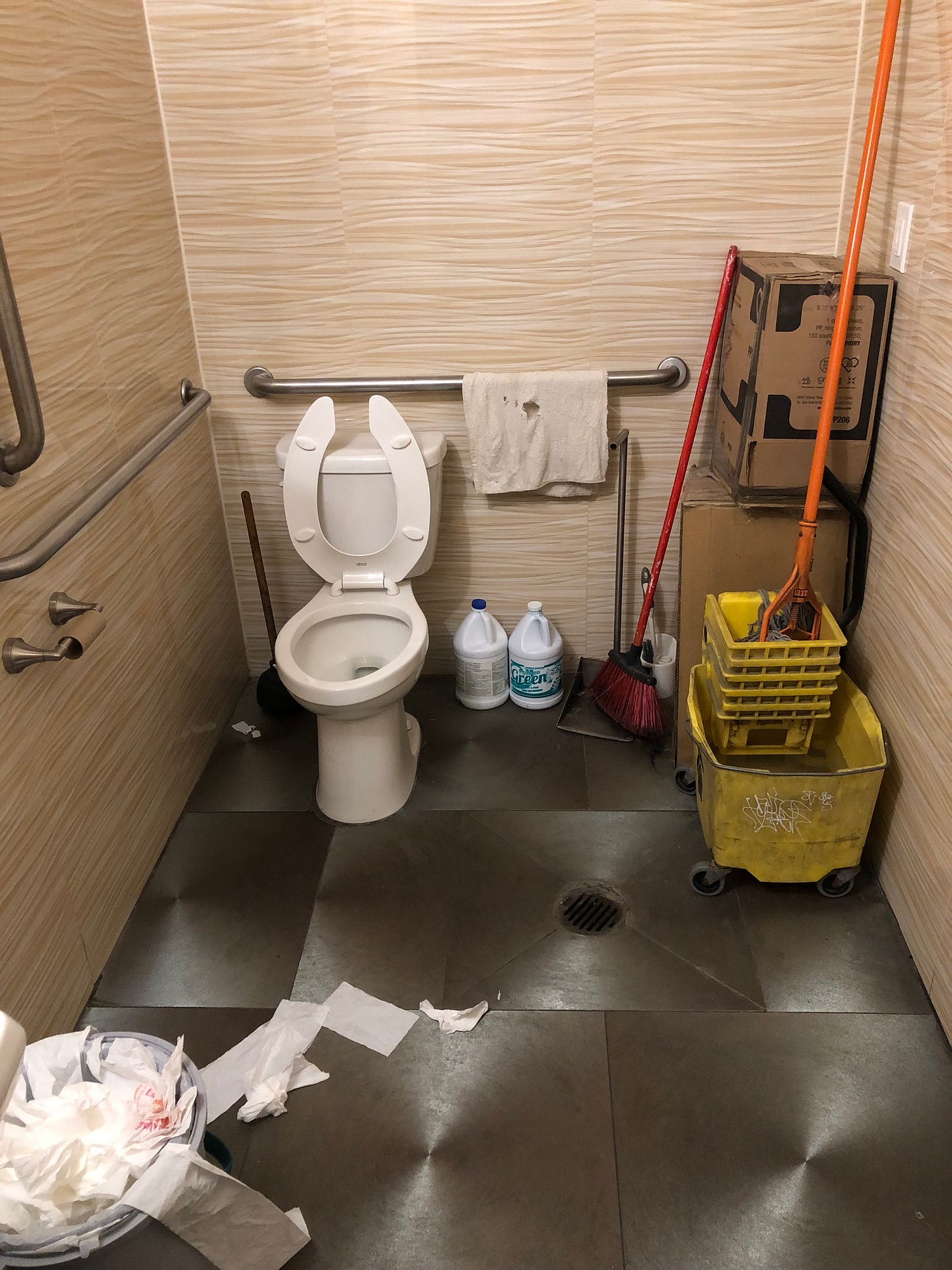 Frightening Bathroom - Does the bathroom look like a CIA black site? Do you fear contracting an illness while using the facilities?