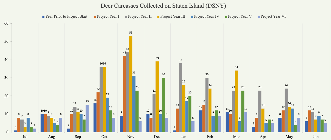 The Department of Sanitation provided this graph of Deer Carcass Collections. It’s difficult to tell whether the program is working from this stupid graph, but it’s pretty funny that it exists in the first place.