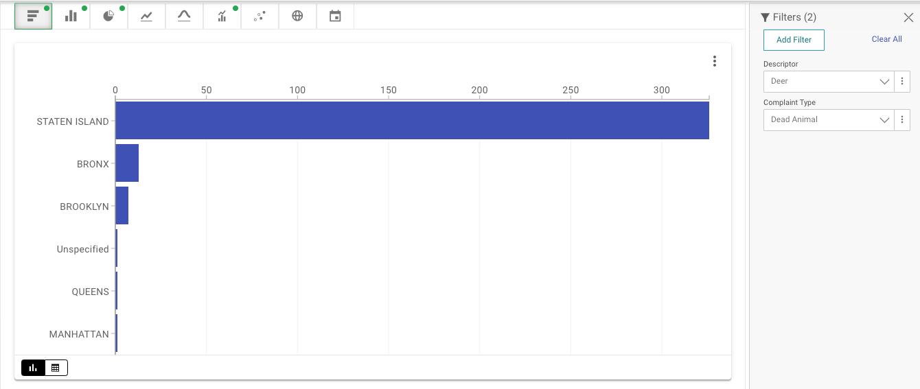 According to NYC Open Data, the number of 311 calls to remove dead deer in Staten Island dwarfs the number of calls to remove dead deer in all other boroughs combined.